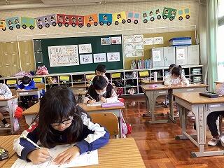 3時間目は,連絡帳の書き方のお勉強をしました。お家の人に喜んでもらえるように一生懸命に書いていました。