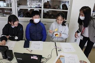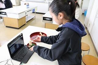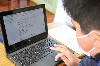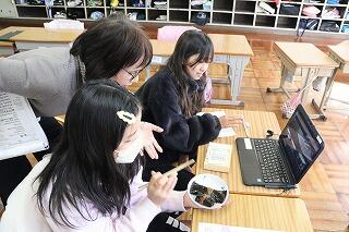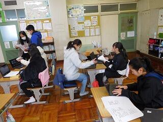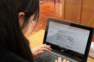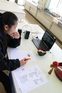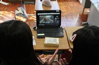 読み方がわからない英語は、本校のALTに聞いたり、オンラインの画面にしっかり映っているかを確かめるために、タブレット端末のカメラ機能を使ったりしていました。