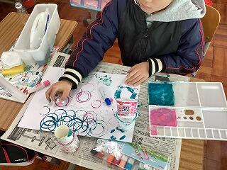 昨日の図工では,身の回りの材料を使ってスタンプ遊びを楽しみました。