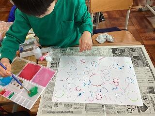 絵具の色や材料を変えながら,いろいろな映し方を試し,素敵な作品が完成していきました。