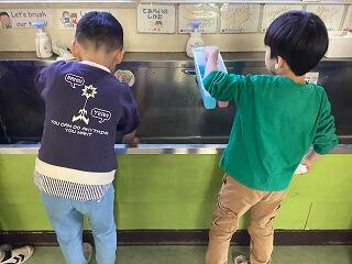 最後は,絵具セットの片付け。初めて使った時から比べると,随分と上手になりました。
