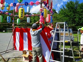 昨年度は,コロナの影響で中止になってしまった地域の夏祭り(手賀地域ふるさと協議会・手賀地域社会福祉協議会主催)は,朝早くから夏祭りの担当の方がやぐらを組んだり,テントをたてたりとお祭りの準備してくださいました。