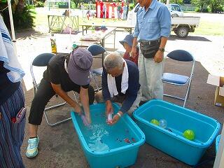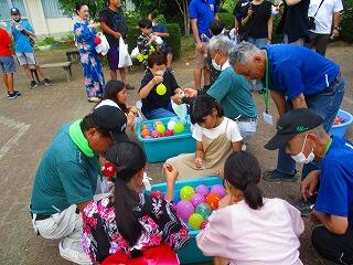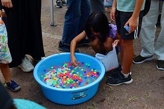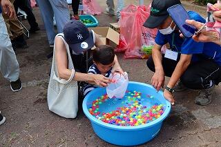 スーパーボールすくいとヨーヨー釣りは,子供たちから大人気のコーナーでした。きれいな色や好きな色を狙っています。みんな楽しそうです。