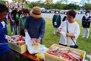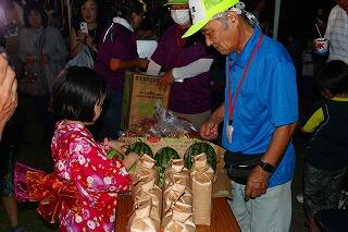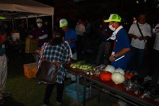 今年の新米や梨,スイカ,カボチャ,トウモロコシ,ナス・キュウリ,里芋など地元でとれた野菜が景品でした。大人も子供もみんなで楽しく参加しました。