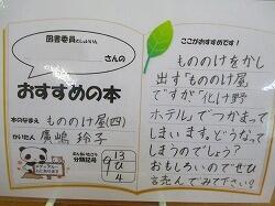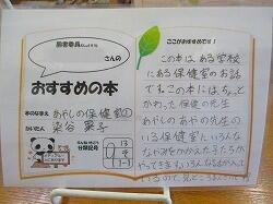 どんな本なのかは,図書委員会が作成しているおすすめの本のポップを見てください。