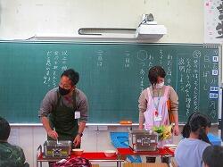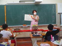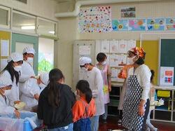 給食の時間に給食センターの栄養士さん2名がいらっしゃいました。