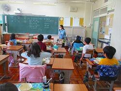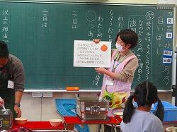 各教室では,自己紹介と今日の給食のデザートのデコポンに関するクイズをしてくださいました。