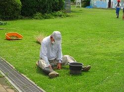 保護者のみなさんと子供たちも一緒に草取りをしました。