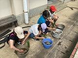 バケツの半分くらいに土や水を入れてかき混ぜて水田に似ているような環境にしました。
