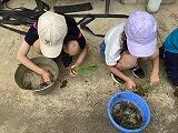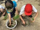全校田植えのときに教わった稲を3本ずつ取って植えました。
