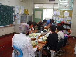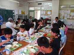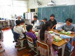 給食は,5.6年生が卯月先生と一緒に食べました。楽しい時間でした。