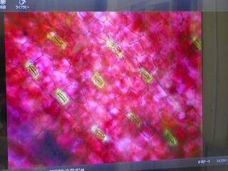 ホウセンカの後は,「シマムラサキツユクサ」という植物の葉の気孔を見ました。