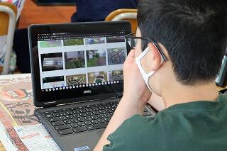 今朝の「情報の時間」は、全校で作品を見合い、アンケートフォームで投票をしました。