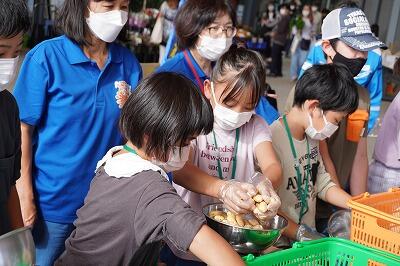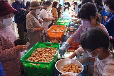 約40名の子供たちが、販売だけてなく、試食の提供、カードによる宣伝、いきなり落花生クイズ等の担当に分かれ、一生懸命に働きました。