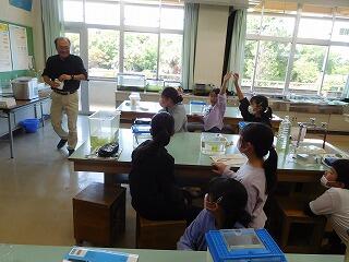 えさの量や直射日光、水温について、質問しました。大事に育てようという気持ちが伝わります。