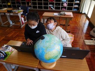 その後、地球儀にはどんなきまりがあるのかについての動画を見ながら、端末を使ってメモを取りました。タイピングの速度も、だんだん速くなっています。
