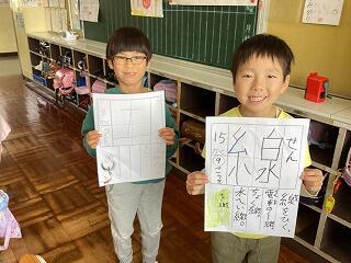 今日の朝は,山ゆりリレーに始まりました。いい汗をかいた後で平仮名「り」と「う」の練習をしました。始筆の位置やはねの位置などに気を付けながらおけいこ帳に書き,その後はiPadの筆順ソフトを使って練習をしました。