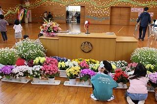 まずは着任式です。新しい先生たちを花のアーチで迎えました。