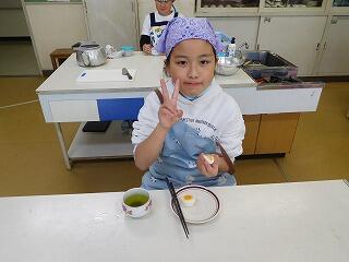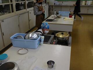 5年生は、一人で一つのテーブルを使うことができます。用具の準備も洗い物も、すべて自分でやらなければいけないのは大変ですが、それだけ力がつきます。実際、今日だけで、洗い物も素早くできるようになってきました。