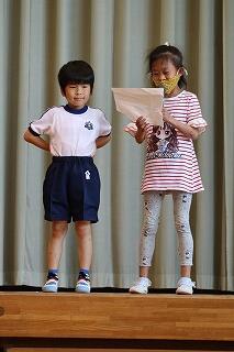 この日のために、6年生はインタビューを行い、1・6年生のペアでしっかり言えるよう、リハーサルも行っていました。そのかいがあって、全校児童は大盛り上がりでした。