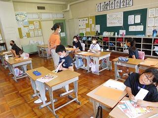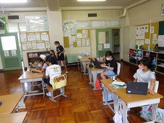 オンラインで授業に参加している児童もがんばっていました。