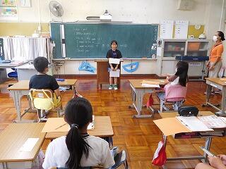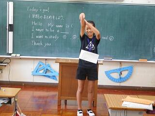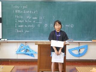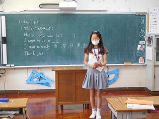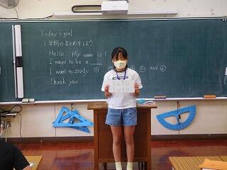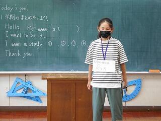外国語では、1学期に学習する範囲が終わったので、まとめとして、スピーチを行いました。