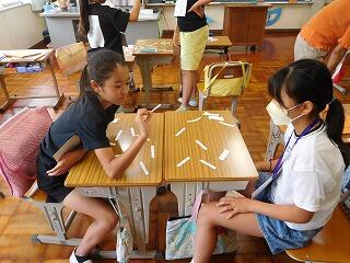 最初に、3グループに分かれて、「かぶっちゃやーよ」というゲームをしました。話し合いと勘が大切なゲームです。