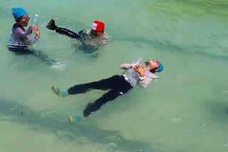 楽な泳ぎ方や自力で浮く方法,ペットボトルを使って浮く方法もしました。