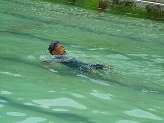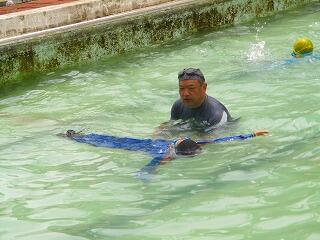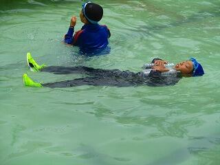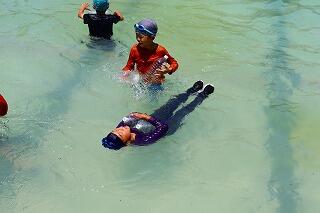 楽な泳ぎ方や自力で浮く方法,ペットボトルを使って浮く方法もしました。