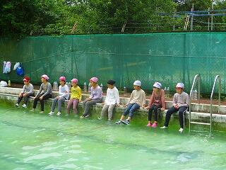 最後にペットボトルを使って浮く方法として,①ビート板法 ②ラッコ法 ③まくら法があることを教頭先生に教えてもらいました。みんなで体験しました。ラッコ法を試す人が多かったです。