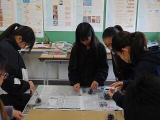 5年生 理科 松ぼっくりでクリスマスツリー作り