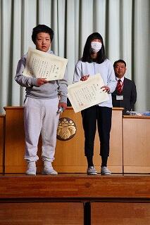 柏市優良健歯コンクールで優良健歯賞を6年生が表彰されました。柏市小中学校技術・家庭科作品は,作品をみんなに紹介しました。