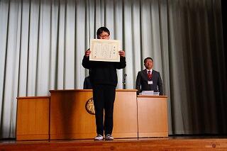 柏市善行賞もいただきました。地域の文化財の清掃が良い行いとして表彰されました。柏市科学展は,優秀賞の児童が壇上にあがりました。読書感想文コンクールやキーボー島,一輪車の認定証,読書マスターの表彰も行いました。