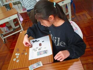 今回は,お金の模型を使いながらの学習です。どのお金がどこ(なんの位)に入るのか確認してから,学習を始めました。