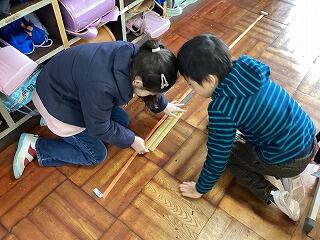 みんなで調べた方法を発表した後に、正確にはかるためには、長いものさしを使うといいことに気づきました。