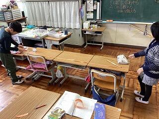 ものさしがいくつ分あるか調べたり、紙テープに印をつけながらものさしを橋渡したり、教室にある1mものさしを使ってみたりと工夫していました。