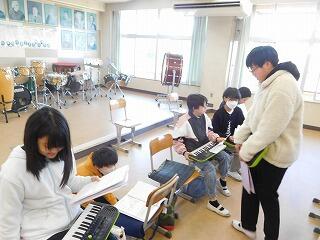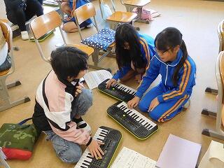 自分たちで話し合ってグループを決めたら、3人で、演奏する順番を決めました。どのような順番で演奏したら自然な感じになるかを考えているグループや、だんだん音が上がっていくようにすることなどを意識しているグループがありました。