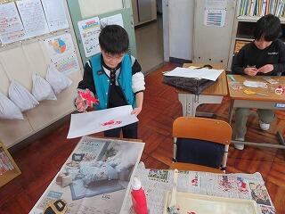 今日、図工の授業で、「でこぼこさん大集合」の授業を行いました。