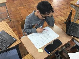子どもたちは書いた子へ「この文はどういうこと?」「この文の読点は必要かな?」と質問し合いながら進めていました。どんな作文に仕上がったのか、とても楽しみです。