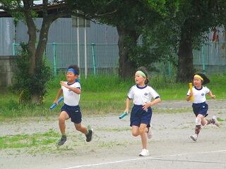 6月末のリレーは,バトンパスがうまくいかないチームもありました。今回は,前回の反省をいかし,6年生が走る様子を見ながらコースを入れ替えていました。