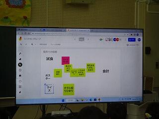 林さんのご協力で栽培している落花生チームは,収穫が2学期になります。1学期の振り返りと落花生栽培を指導していただいている林さんに伺いたい質問を考えました。また,少し早いですが販売の時の役割についても話し合いました。