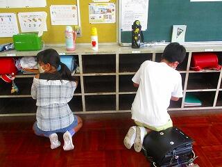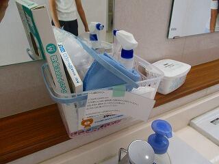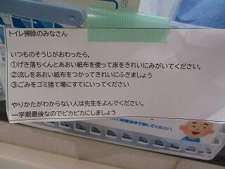 教職員も清掃指導を行いますが,ずっと一緒に掃除ができる日ばかりではありません。子供たちが自分たちでできるように掃除で使う道具をセットしておきます。そして,手順が分かるようにメモも貼ってあります。