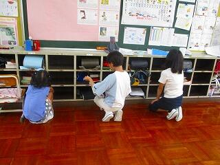 後半は,1学期にお世話になった教室の掃除です。普段できない場所を丁寧に効率よく掃除しています。