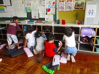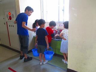 普段は,濡れたぞうきんで掃除しない場所も,今日はバケツに水を入れて水拭きをしました。水拭きするとさっぱりします。