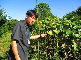 あけぼの山農業公園の方がひまわりの様子を見に来てくださいました。