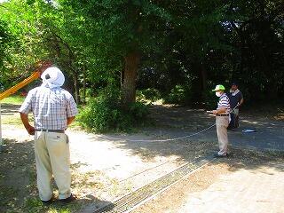やぐらをたてる位置を確認しています。出店や駐車場の場所も確認しながら,相談しながら決めています。
