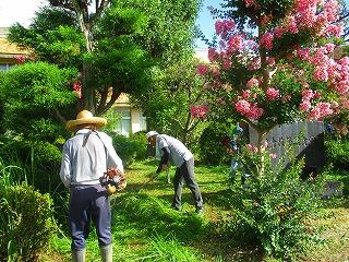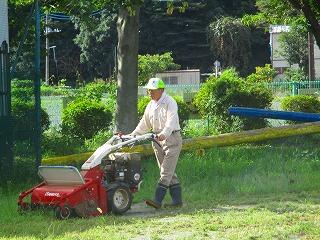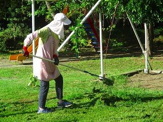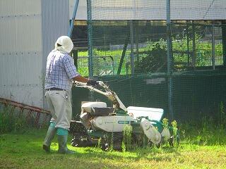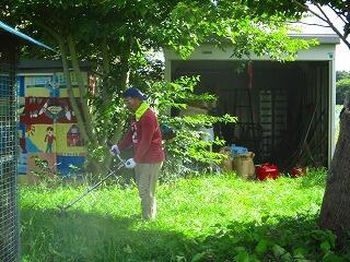 自宅から,機械を持参してくださり,夏休み中に草が大きく伸びた草を次々に刈り取ってくださいました。