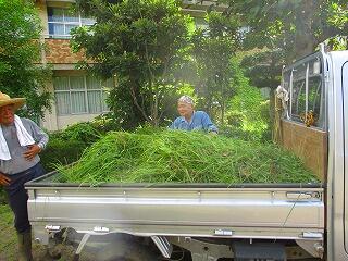 刈り取った草は,トラックの荷台に乗せ校庭の隅の草置き場まで,何回も運んでくださったので,あっという間にきれいになりました。