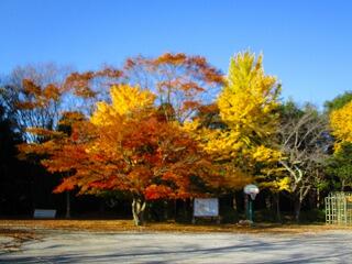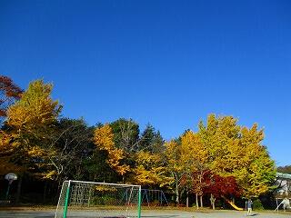 手賀東小学校の木々は,すっかり秋の色になりました。青い空と色とりどりの木々が子供たちを見守っています。