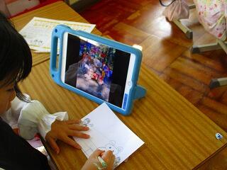 5時間目の時間は,『お礼の手紙』を書いていました。学習端末で撮影した写真を見て午前中を振り返ったり,写真を見ながら絵を描いたり,メモしたことを見返したりしてお礼の手紙を完成させていました。